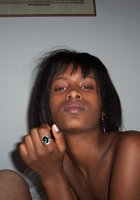 Негритяночка с прической каре поселилась в недорогом отеле на одну ночь и войдя в свой номер сразу же обнажила свой торс и принялась демонстрировать упругие молочные железы. Через время черная сучка была уже только в трусах, но и они надолго не задержались на темнокожей шалашовке, так как ей захотелось остаться абсолютно обнаженной.
