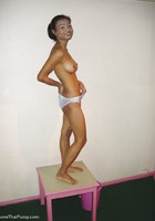 Узкоглазая девушка пришла в номер отеля и там сняла с себя шортики и красный топик, а затем начала эротично позировать стоя на столе и хвастаясь упругой грудью. Через время стройная азиатка сняла с себя белые трусики и переместилась на постель, чтобы помимо голых сисечек продемонстрировать еще и волосатую киску.