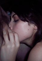 Стройная шатенка с симпатичным личиком периодически радует возлюбленного оральным сексом и как следует сосет его пенис. Когда чувака нет рядом, пошлая чика раздевается, оставляя на себе только чулки и трусики черного цвета, а затем начинает эротично позировать в своих апартаментах, показывая с разных сторон полуголое тело.