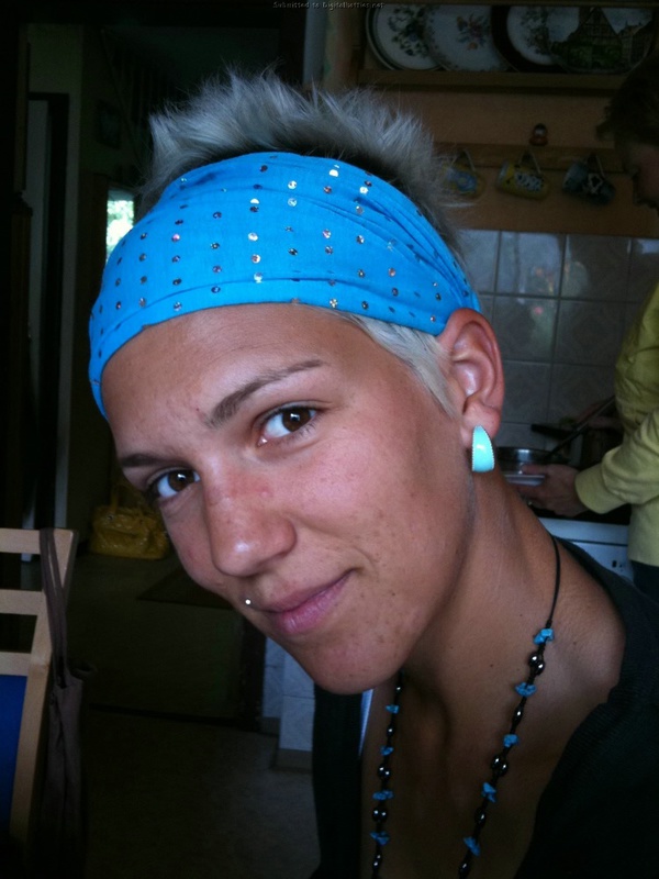 Сучка с короткой стрижкой греет сиськи под солнцем